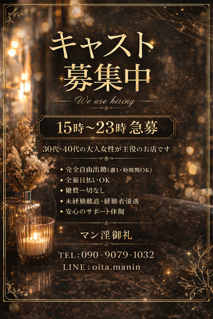 - 当店は風俗店ではありません!よく、この様なお問い合わせを受けますが、当店では風俗サービスは、一切お断りさせていただいております。たとえ、お客様から強要されても、お断りさせて頂いております。無理な強要・要求があった場合には男性スタッフが、迅速に対応いたしますのでご安心下さい。当店のお客様は会員リピーター様が多く、マナーを守って頂ける方ばかりです!安心安全に稼げる環境を整えておりますので、ぜひご応募お待ちしております!
