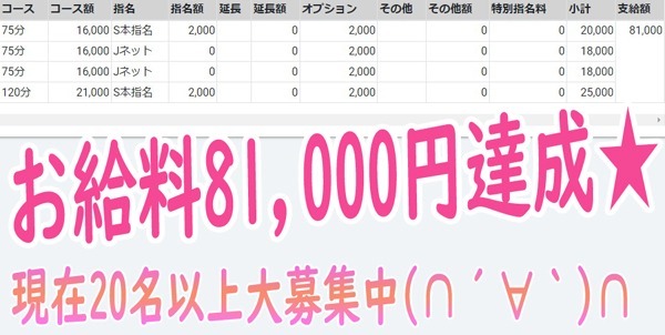 4名接客で8万OVER☆受け身、粘膜接触一切なしで高収入をお約束☆