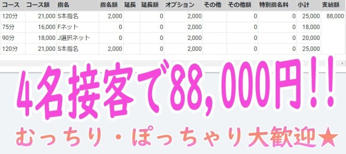 むっちり・自称ぽっちゃりでも安心☆4名接客で10万超えも!?